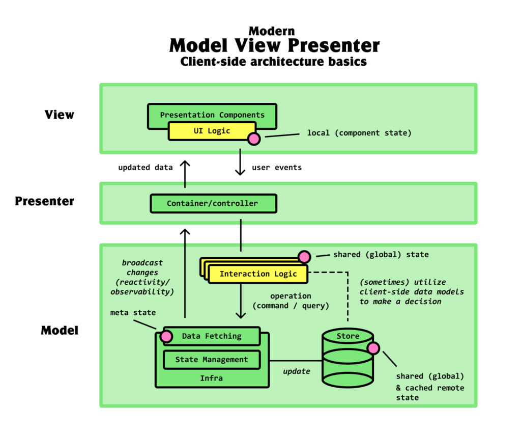 종합하면 모던 리액트 앱의 MVP 패턴에는 다음과 같은 관심사가 있다.