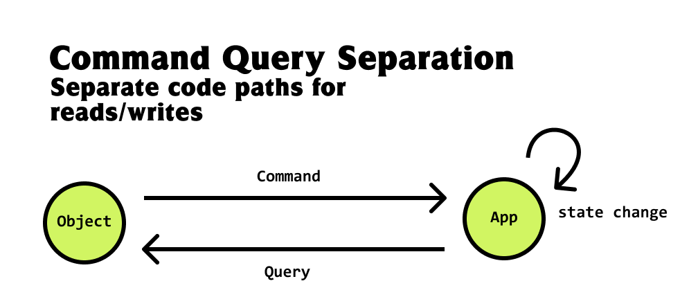 (Using CQS, we can be sure that when if no new commands were executed (against a particular item), we can continue to perform queries for it by sourcing its data directly from the cache. The moment we execute a command against that item, we invalidate it in the cache. Consider how useful this might be for a state management library. As a side note, it’s good to be able to invalidate as precisely as possible, but it’s also generally safe to invalidate “too much” when you can’t be sure. )